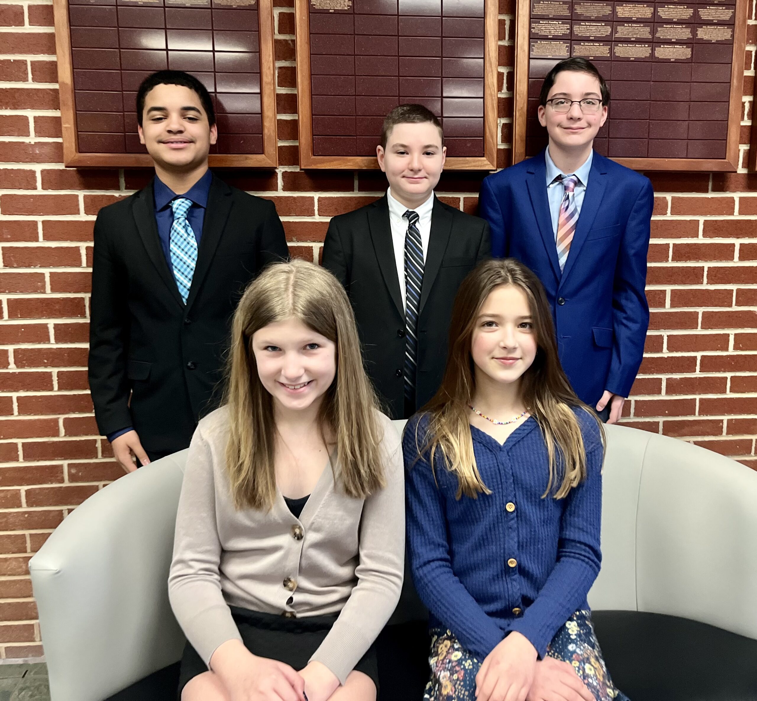 Pitured are seated: Gabriella Carsia and Marissa Yamulla. Standing: Jared Santana, Jackson Moore, and Zachary Naugle.